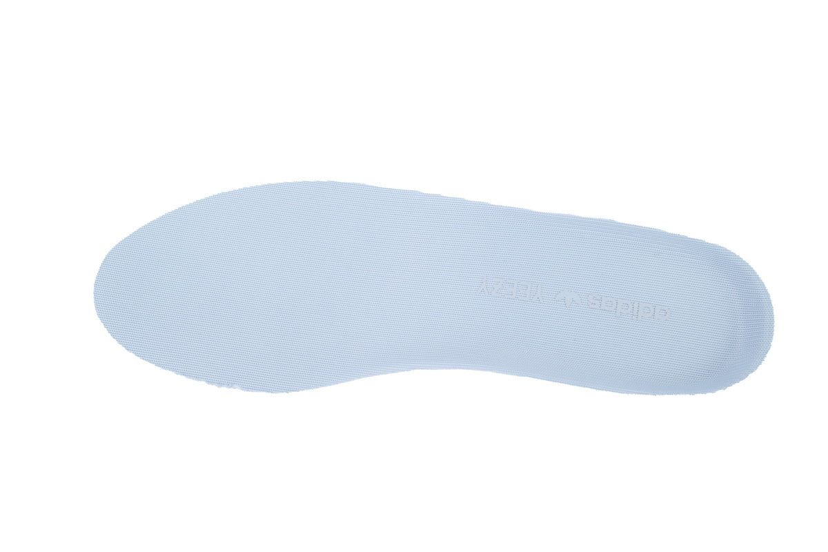 Un beige pâle lumineux sur toute la tige Primeknit avec une bande latérale ton sur ton. Doublure bleu clair subtile, semelle Boost intégrée encerclée de caoutchouc translucide et outsole gomme. Look doux, naturel et très confortable.